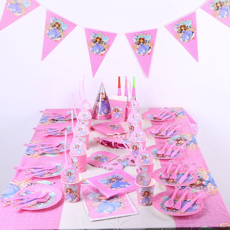 Buy Sofia Princess Theme Party Tableware Plate Napkins Candy Box Banner Flags Kid's unicornio Birthday Right Now Just for USD US $1.76, price will rise up any time without notification and i cant guaranted that stock still available till tommorow. So please save it now!!