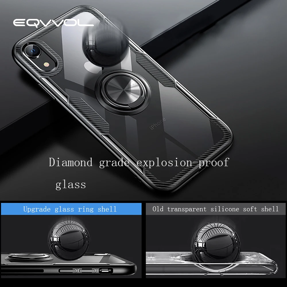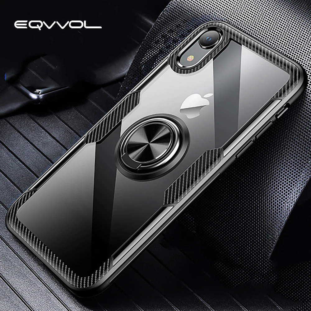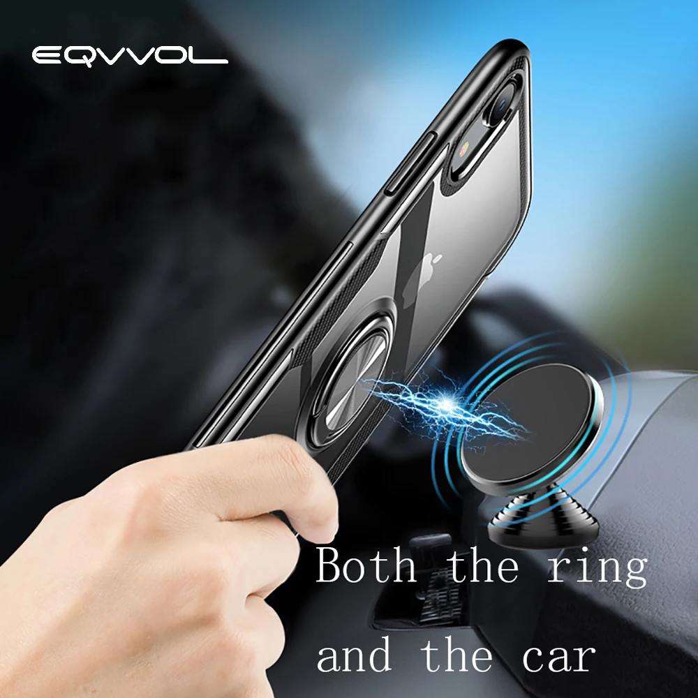 32995364658 Eqvvol Car Magnetic Holder Case For iPhone XR XS MAX X 8 Plus 7 6 Finger Ring Holder Cases 7Plus Ca