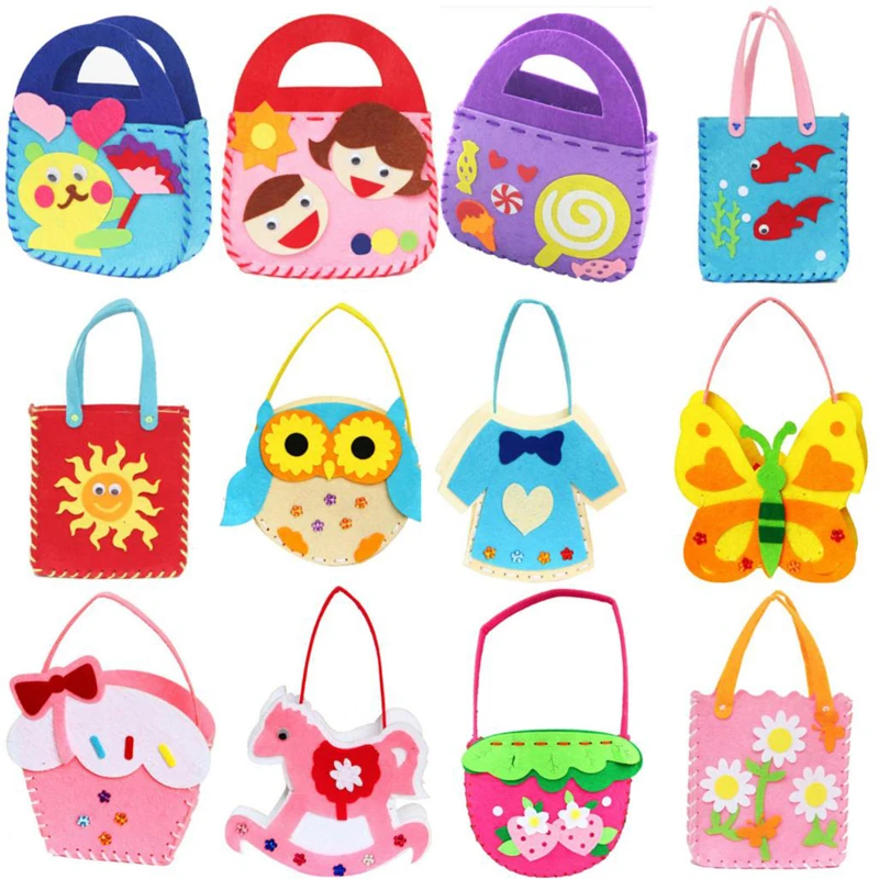 33010012026 Applique Bag Kids Children Handmade Montessori Toys Non-woven Cloth Cartoon Animal Flower Bag Craft
