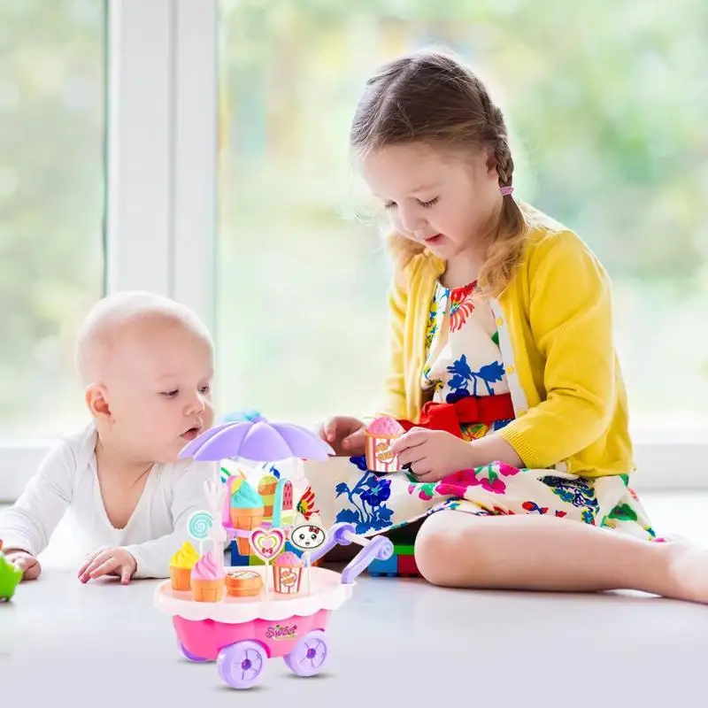 4.00E+12 28pcs DIY Simulation Candy Cart ABS Mini Ice Cream Trolley Toy Pretend Play House Children Girl Toy